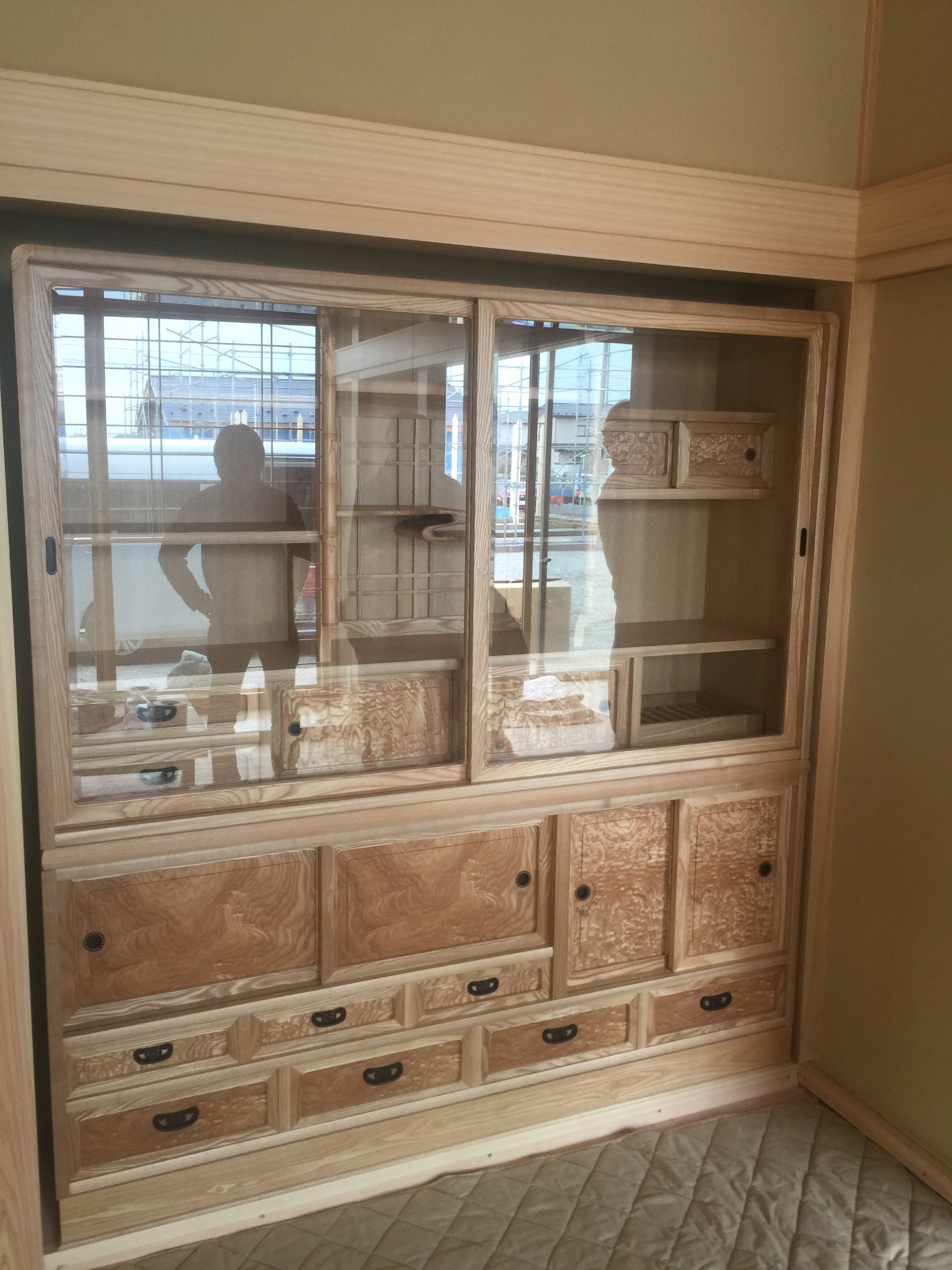 今回納めましたのはタモ玉杢の和茶棚。